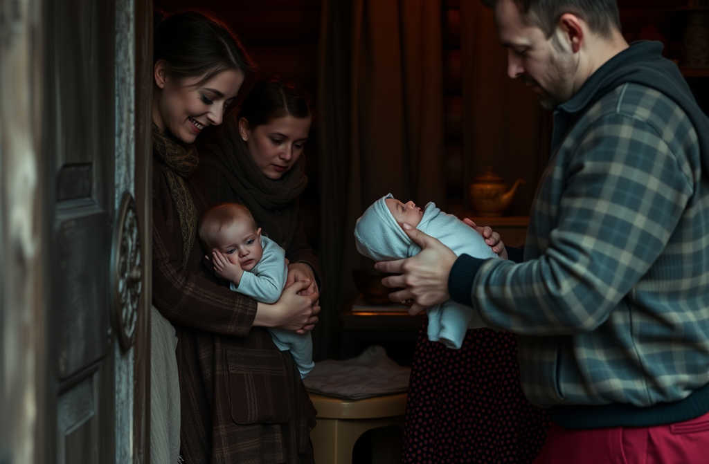 Увидел и без ботинка бросился к ней, взял сына, положил в кроватку. Сам к печке за горячей водой.