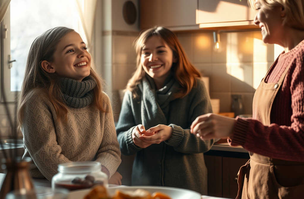 За столом быстро нашлись общие шутки, воспоминания, и даже мама, рассказывая старые истории, шутила: «Вот, Вер, только к тебе кто-то в гости сразу праздник настоящий». Открывали шампанское, поднимали бокалы «за новые встречи», и Вероника вдруг поймала себя на улыбке тёплой, спокойной, давно забытой. В этот раз не нужно было спешить никуда, казалось, это мгновение растянется на весь новый год.