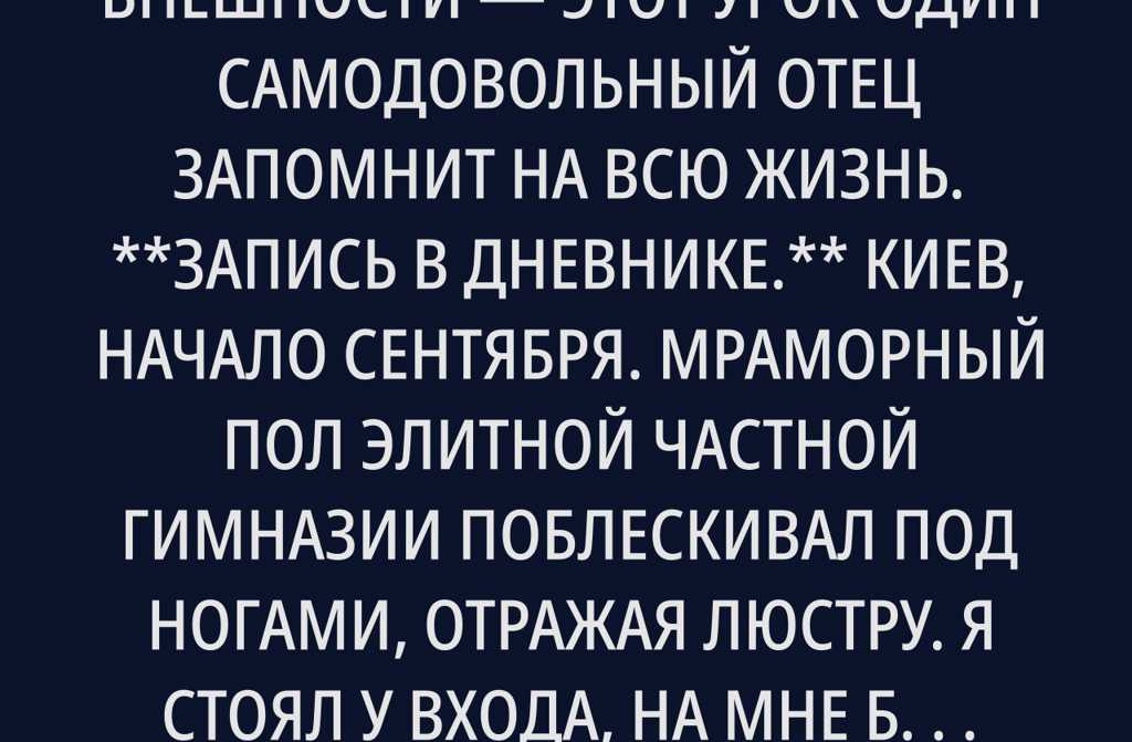Киев, начало сентября. Мраморный пол элитной частной гимназии поблескивал под ногами, отражая люстру. Я стоял у входа, на мне был идеально сшитый костюм от лучшего польского портного, и вдруг заметил рядом женщину, на первый взгляд совсем не вписывающуюся в этот парад блеска и статуса. На ней были простые джинсы, серый трикотажный свитер, а рядом мальчик лет семи, в потертых кроссовках. Я невольно фыркнул, глядя на неё, и сухо сказал: