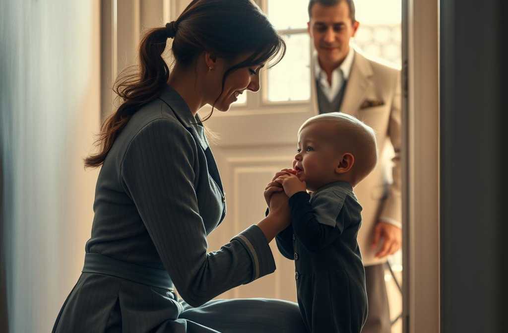 Он подошёл к двери, но Ольга, не заметив его, продолжала петь колыбельную, нежно поглаживая ребёнка. Иван, чувствуя, как его сердце сжимается, вошёл в комнату. Ольга испугалась, поправила фартук и, с дрожью в голосе, спросила: «Сэр, я и не знала, что вы здесь».