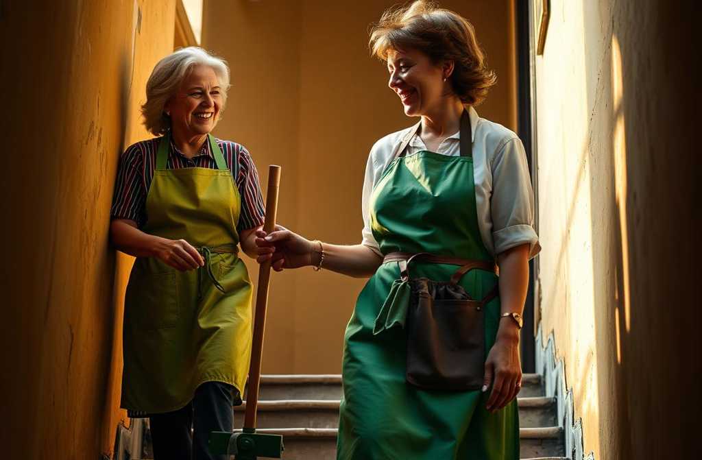 Летом компания повысила ей зарплату и предложила возглавить небольшую команду. Она уже не была одна с шваброй; учила других женщин делить работу, отстаивать права, уважать себя. Между инструкциями она часто вспоминала начало: неоновый свет, оранжевое ведро, ребёнка, читающего на третьей ступеньке, и благодарила за каждый подъём.