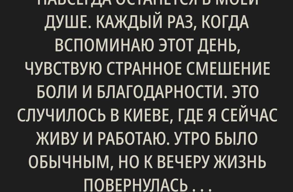 Сегодня случилось нечто, что навсегда останется в моей душе. Каждый раз, когда вспоминаю этот день, чувствую странное смешение боли и благодарности. Это случилось в Киеве, где я сейчас живу и работаю. Утро было обычным, но к вечеру жизнь повернулась совершенно необычным образом.