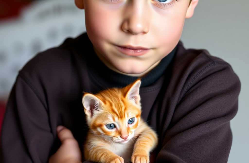 Он поднял вверх рыжего, как солнышко, котёнка. Тот, увидев перед собой грозное лицо, не испугался. Вырвавшись из рук мальчишки, прыгнул на прилавок, пробежал по нему и прижался к грязноватому белому халату тёти Клавы, потеревшись о неё маленькой рыжей головкой.