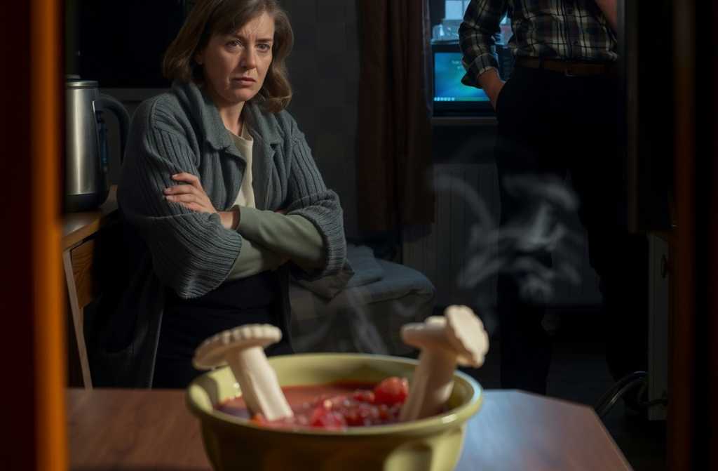 На кухне, среди чайников и грибной сушки, за столом сидел Костя, её муж настоящий киевский парень с привычкой не торопиться. Перед ним остывал борщ, в руке ложка, но смотрел он уже не в экран зевающей передачи, а на жену.