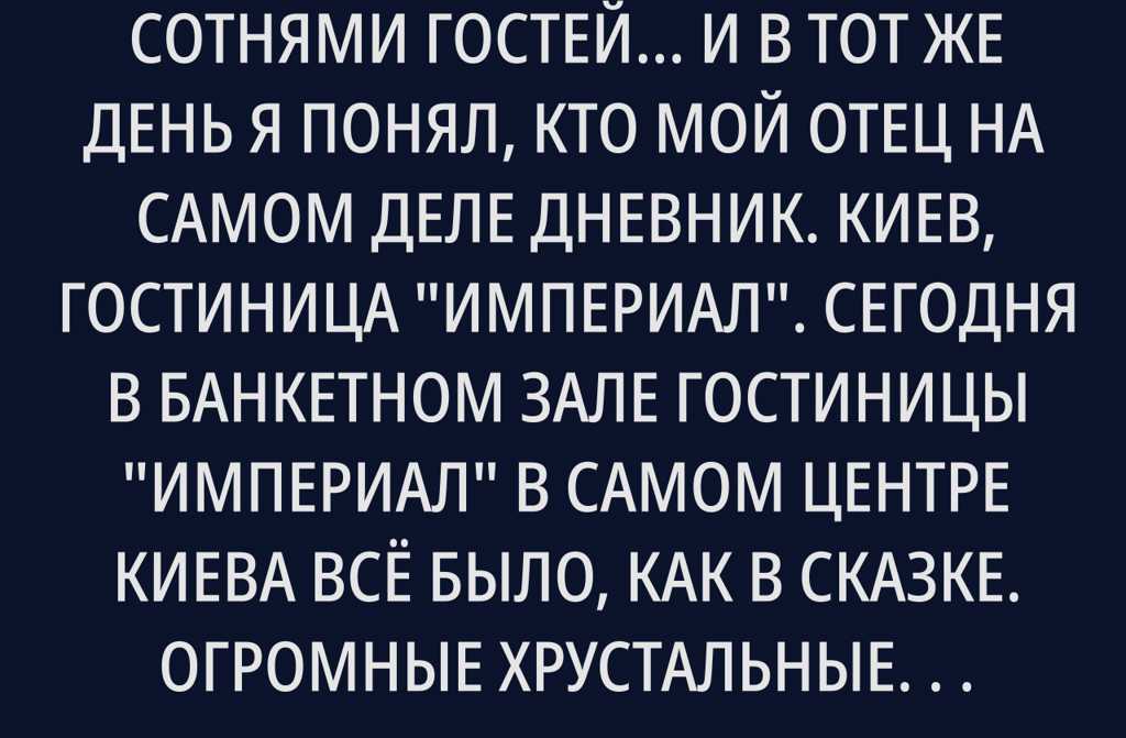 Сегодня в банкетном зале гостиницы “Империал” в самом центре Киева всё было, как в сказке. Огромные хрустальные люстры отражали свет, словно дождь, замерзший в воздухе. Отполированный мрамор сиял, каждая ткань и кожа старых кресел выглядела дорого и идеально.