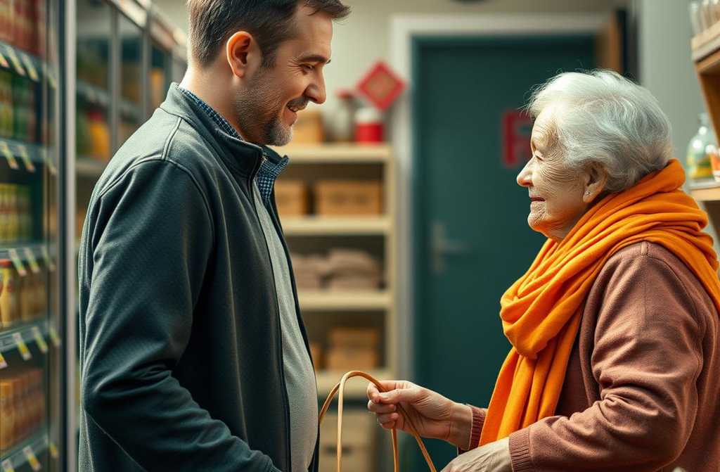 Ситуация, казалось, разрешилась, но старушка, собрав покупки, обернулась к нему: