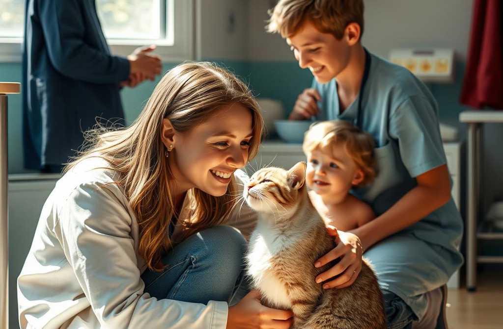 Через несколько минут я вошла в светлый кабинет, где стоял Игорь с котом в руках. Рядом с ним играл мальчик, поглаживая испуганное животное.