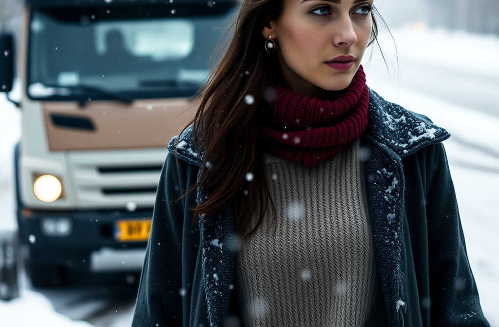 Тем временем за происходящим наблюдала девушка. Проезжая мимо, она увидела остановившийся грузовик и решила, что водителю нужна помощь. Но потом заметила, как мужчины тащат что-то в лес. Шёл сильный снег. Девушку заинтересовало зачем выгружаться посреди дороги в такую погоду? Может, прячут улики?