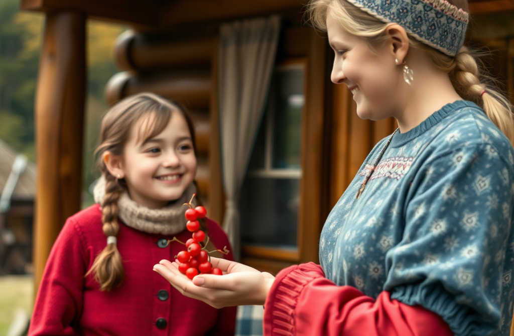 Поздней осенью, когда сруб уже стоял почти готовый, а над деревней тяжёлые облака нависли перед первым снегом, я решился. Дождался Юлю у ворот, в руках держал ветку последней алой рябины.