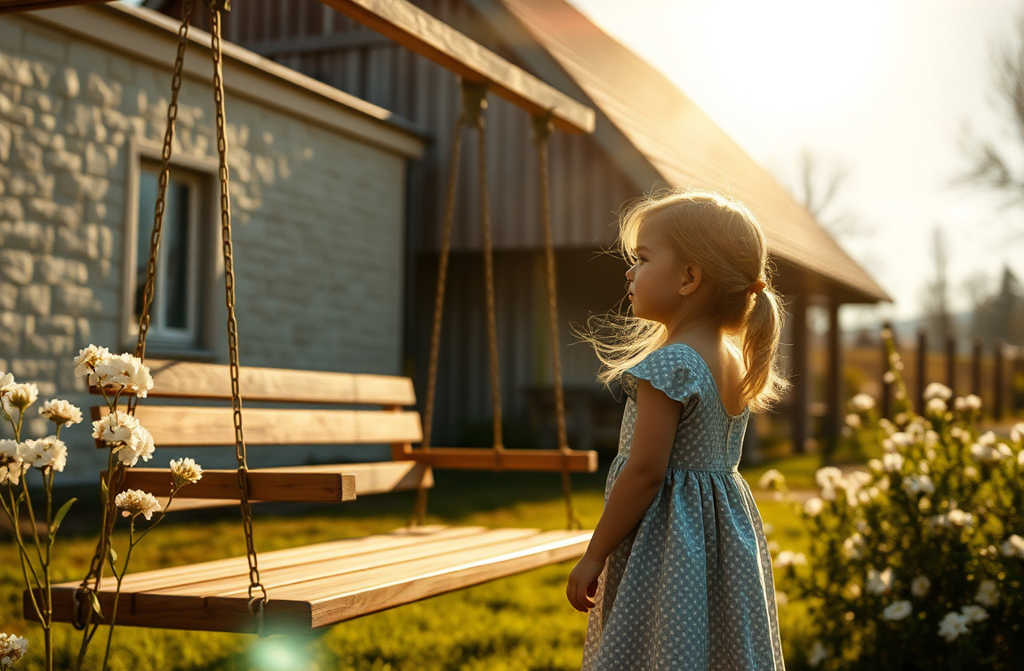 Маша пошла в школу. Однажды сидела на веранде и наблюдала, как Игорь всё делает. Затем отправилась к соседке, а вечером, вернувшись, увидела во дворе новые качели, качающиеся от лёгкого ветра.