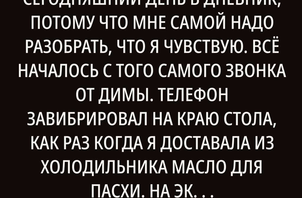 Записываю сегодняшний день в дневник, потому что мне самой надо разобрать, что я чувствую. Всё началось с того самого звонка от Димы. Телефон завибрировал на краю стола, как раз когда я доставала из холодильника масло для пасхи. На экране высветилось: «Димочка». Я улыбнулась та самая улыбка, что появляется у мам, которые весь день делают вид, будто не ждут звонка, хотя на самом деле ждут каждую минуту.