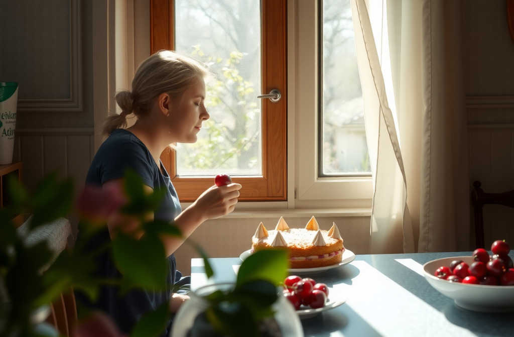 Я взял мясо, не подогревал. Нарезал торт для себя. Заварил чай густо, по-деревенски только что из чайника. Медленно ел. Вишнёвый бисквит с легкой кислинкой. Между кусками просто тишина.