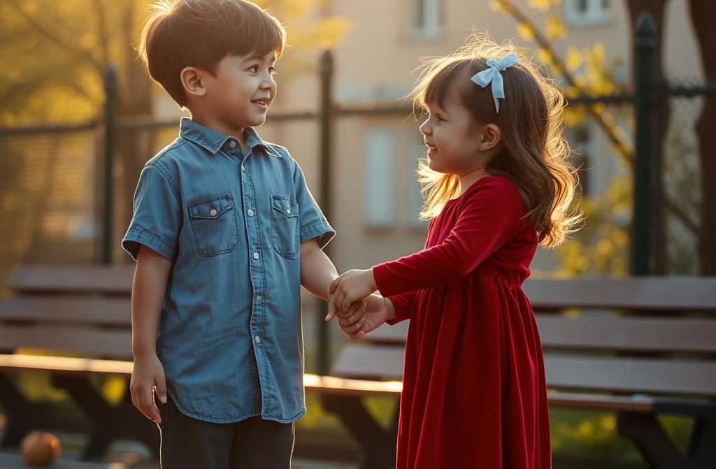 Утром Алёша твёрдо подошёл к девочке в синем платьице с бантами. Взял за руку и торжественно объявил: