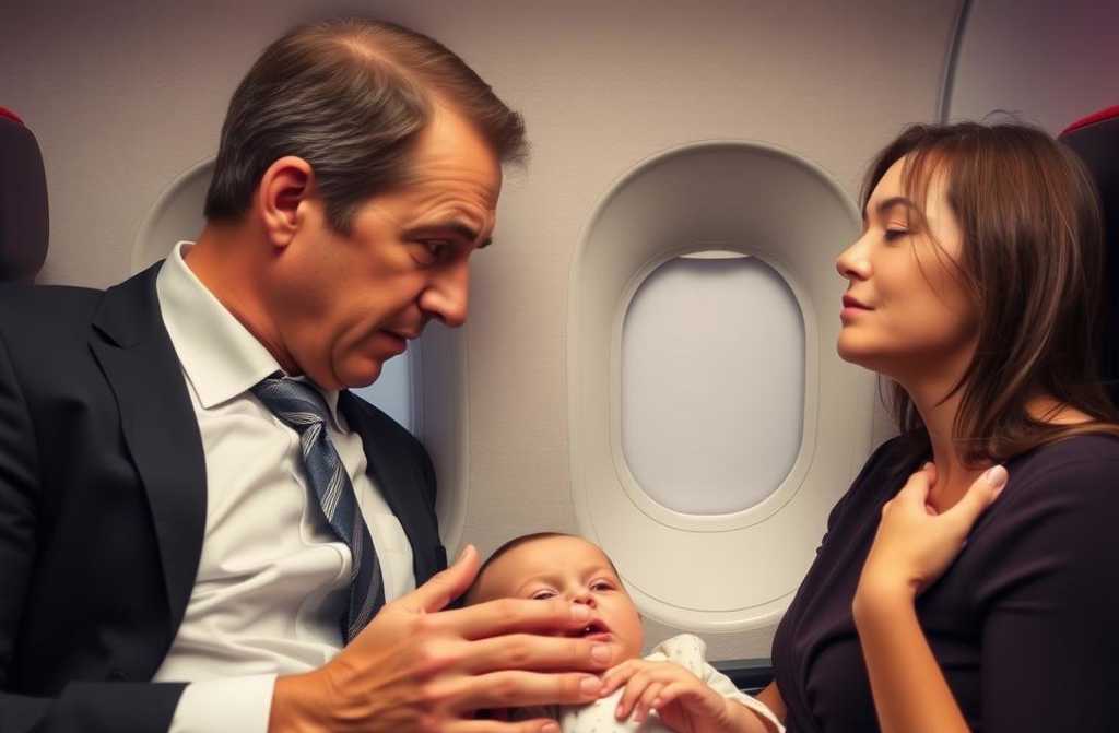Он поднял взгляд. Перед ним стояла бортпроводница, а за ней — женщина лет тридцати с рыдающим малышом на руках.