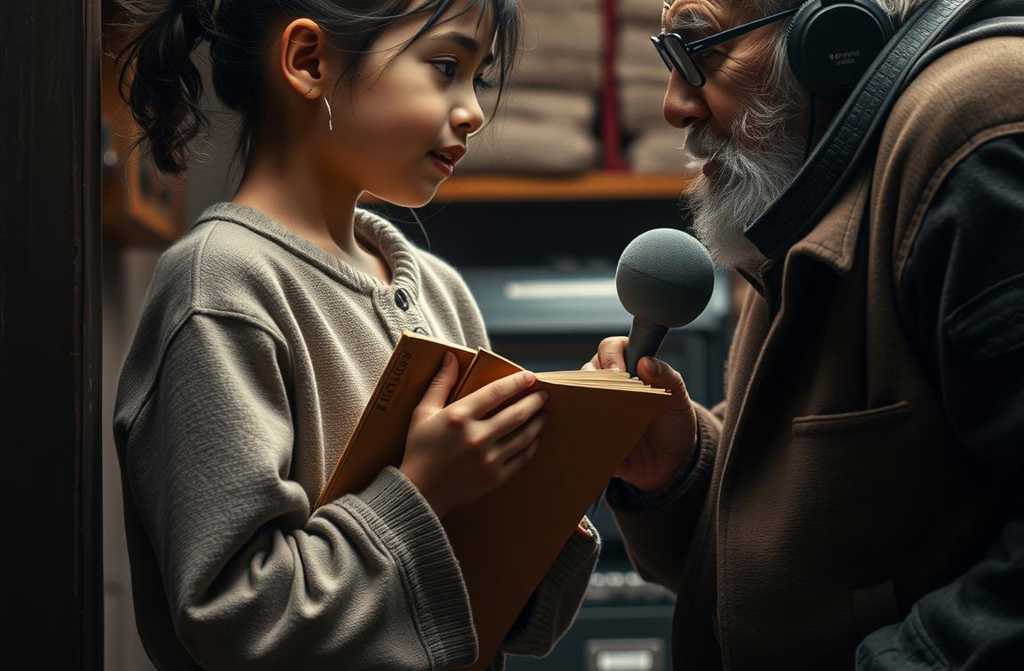 Ведущий, пожилой мужчина с седыми усами, взглянул на неё скептически. Его кабинет был завален бумагами, пожелтевшими афишами, а в углу тихо играл старый радиоприёмник.