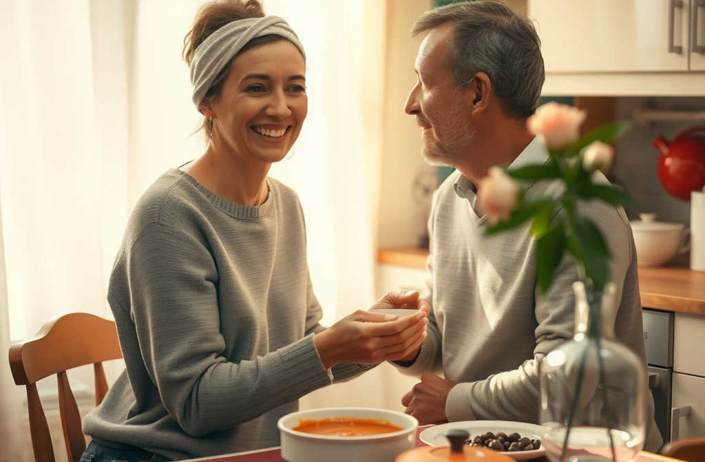 Однажды утром она проснулась не потому, что надо, а потому что захотелось. Достала из шкафа любимую водолазку та была с вышивкой снежинок, маминым подарком на прошлый Новый год. Потянулась к холодильнику, нашла шампиньоны, сметану, укроп и сказала: «Сварю грибной суп». Я вернулся домой и застал её в процессе и этот аромат наполнил квартиру уютом, а сердце радостью.