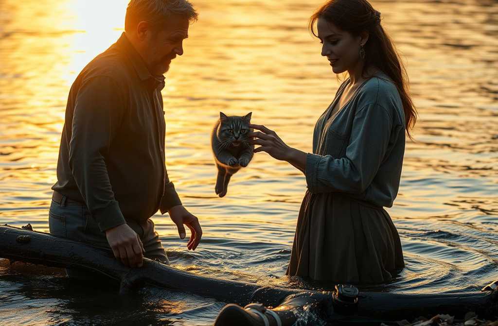 Кошка, будто поняв, прыгнула к Михаилу и вцепилась когтями в плечо. Боль пронзила его, но он только выдохнул: *«Держись»*. Развернулся и пошел назад, с трудом переставляя ноги. Холод парализовал тело, протез мешал, силы таяли. Гул воды усиливался волна была уже за спиной. Михаил почувствовал дно под ногами, сделал последний шаг и рухнул, теряя сознание. Последнее, что он увидел: кошка выпрыгнула на берег.