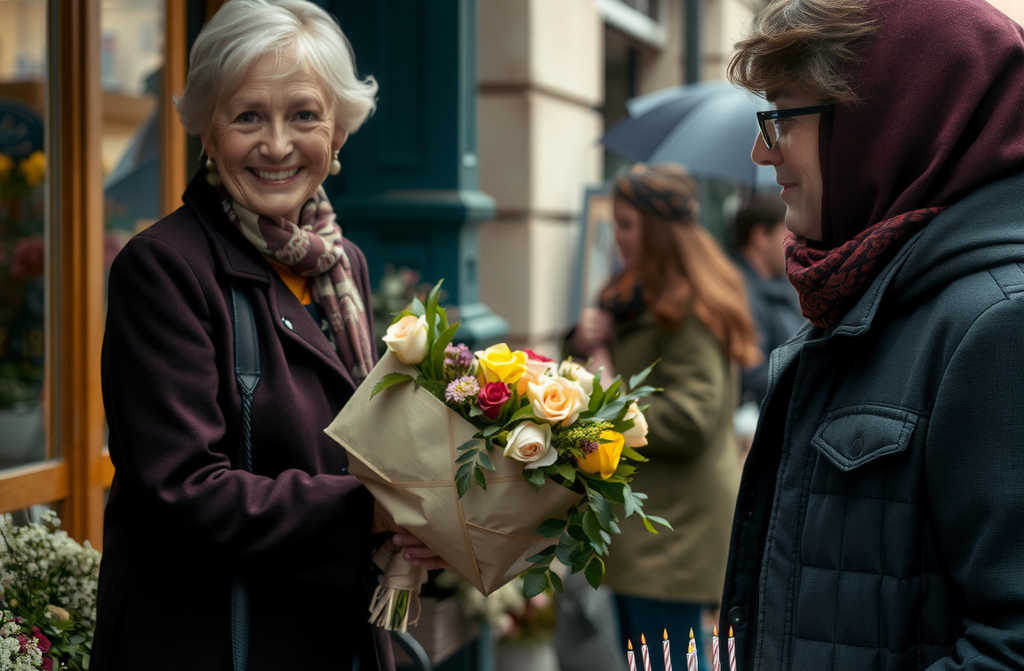 Валя, учительница математики, с волнением готовилась к празднованию дня рождения своей любимой подруги и коллеги, с которой они сорок лет вместе шли по утренней киевской улице к школе. Рано утром Валя тщательно выбирала рубашку и длинную стильную юбку, несмотря на недавнюю бурю и лужи кругом. Она решила идти пешком в ближайший магазин за тортом и пышным букетом для подруги, доживающей свои лучшие годы как и она.