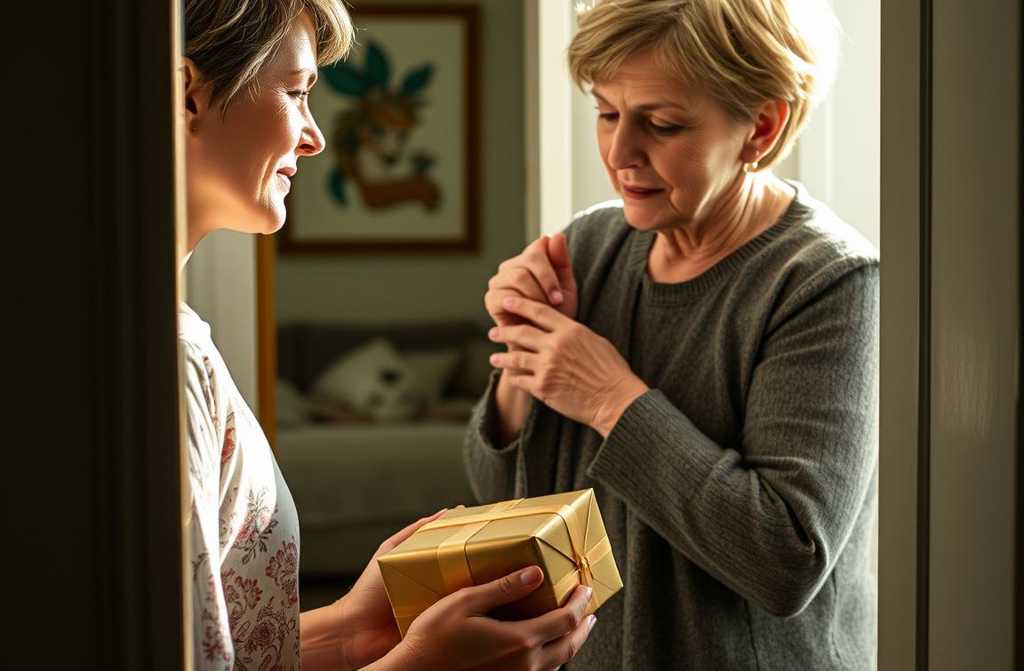 Через две недели я стояла у двери Анны Ильиничны с коробкой, обёрнутой в золотистую бумагу. Мне понадобились дни, чтобы набраться смелости. А вдруг она не захочет меня видеть? А вдруг сочтет это неуместным после развода?