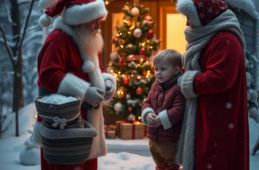 Мама, кто там? из-за плеча выглядывает Саша. Ого! Дед Мороз!