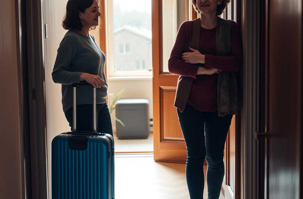 В коридоре стоял её чемодан, синий дорожный, который она берёт в отпуск. Он был закрыт, ручка поднята, будто готов был к отъезду.