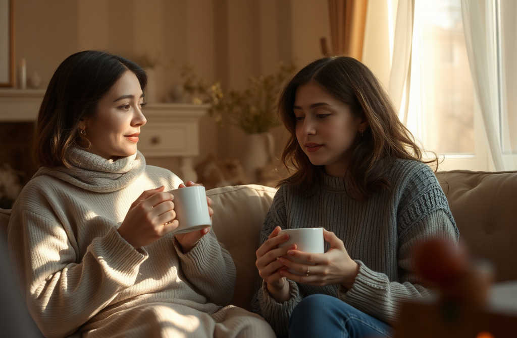 В комнате воцарилась умиротворяющая тишина. Солнечный свет, пробиваясь сквозь шторы, играл на поверхности её кофе. Отец откашлялся, достал сахарницу и громко стукнул ложкой привычный звук вернул ощущение нормальности, домашнего уюта.