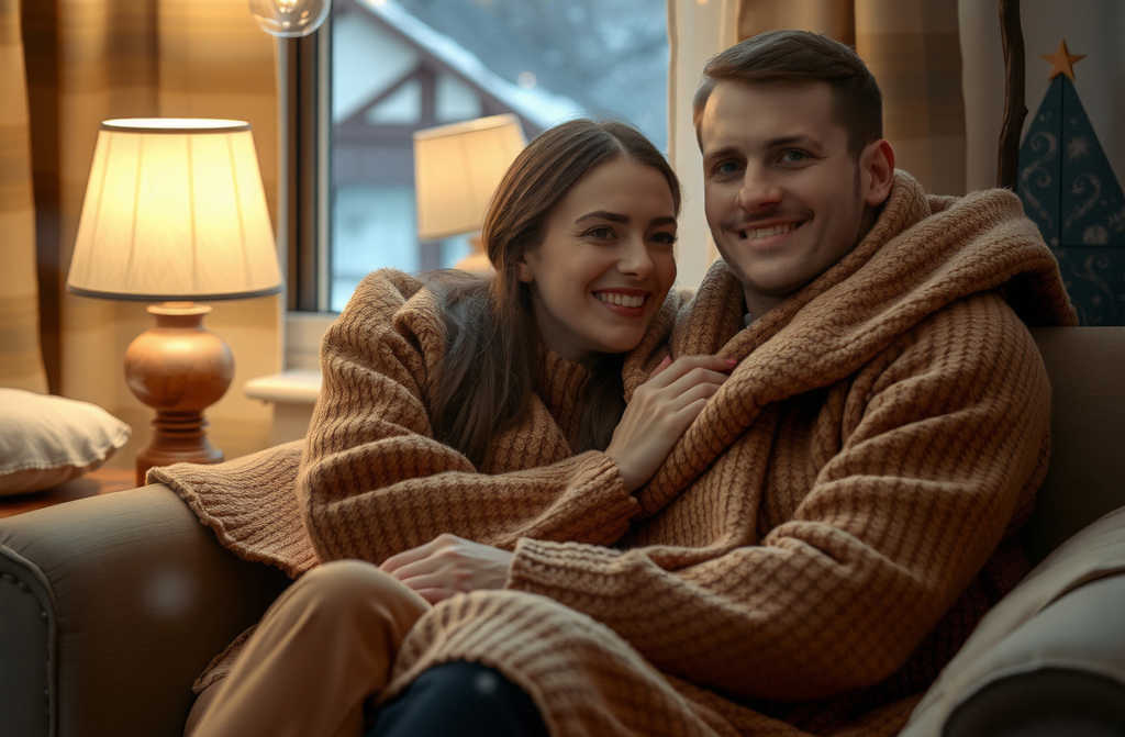 Подружжя сидить на дивані під мяким пледом. На екрані телевізора йде українська сімейна комедія, яка особливої думки не несе просто щоб посміятися й відпочити. Наталія уважно дивиться на екран, час від часу легенько посміхаючись своїм думкам. Олексій сидить поруч, розслаблено, періодично відволікаючись від фільму на мерехтіння снігу за вікном. Це видовище заворожує.