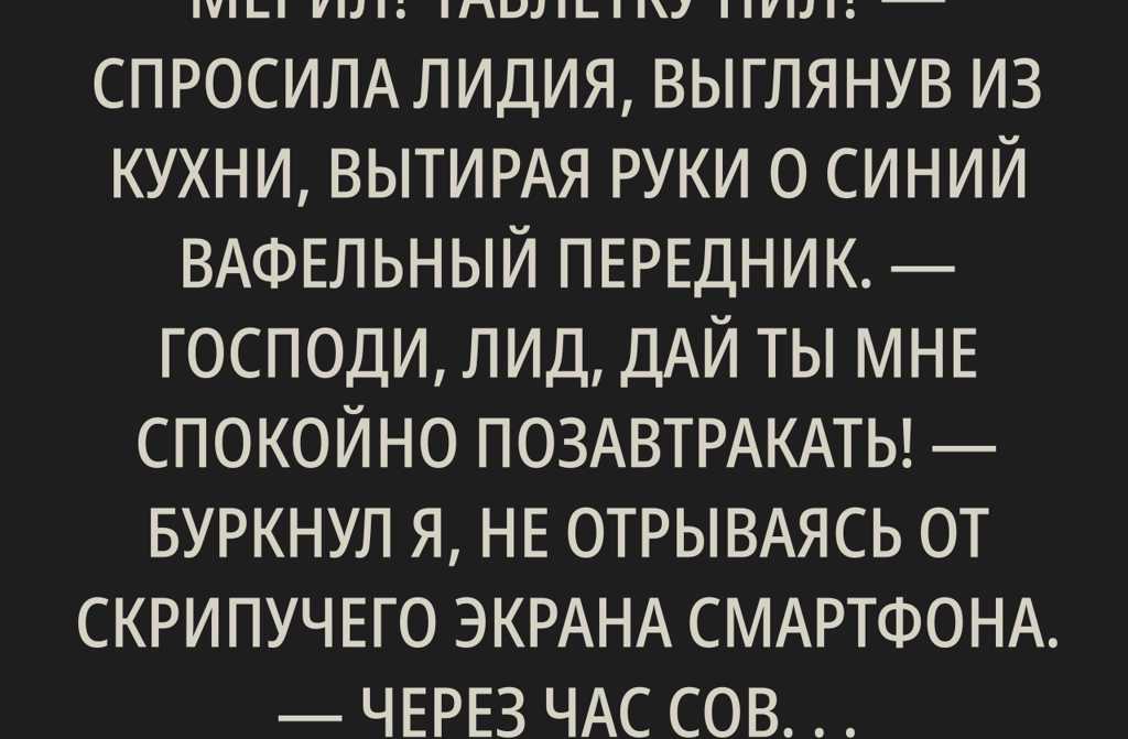 Господи, Лид, дай ты мне спокойно позавтракать! буркнул я, не отрываясь от скрипучего экрана смартфона. Через час совещание. Где моя синяя рубашка, та хлопковая? Погладила?