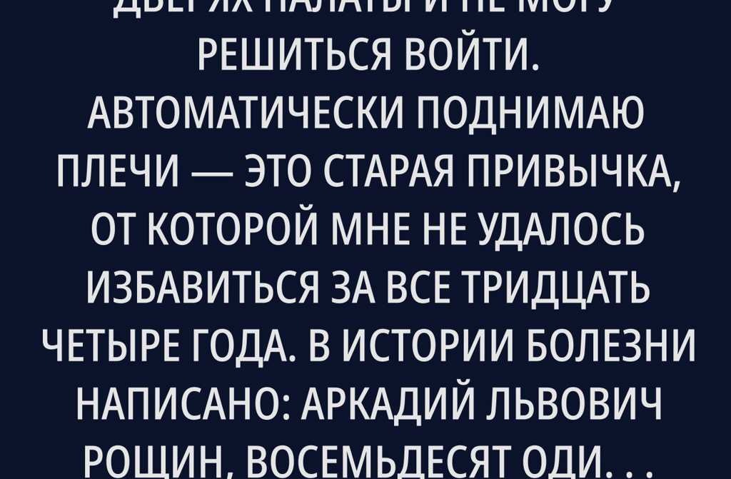 Я стою в дверях палаты и не могу решиться войти. Автоматически поднимаю плечи это старая привычка, от которой мне не удалось избавиться за все тридцать четыре года. В истории болезни написано: Аркадий Львович Рощин, восемьдесят один год, последствия ишемического инсульта, паралич нижних конечностей.