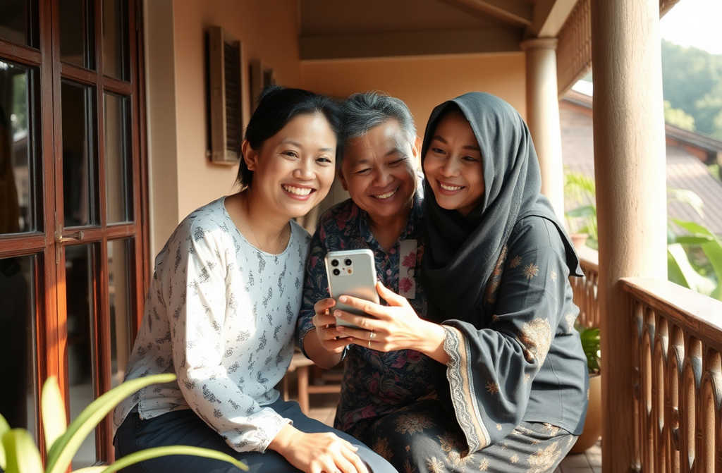 Вера показала длинную веранду, где хозяйка Лан несла чай и фрукты. Увидев строгое выражение на экране, Лан засмеялась ещё шире.