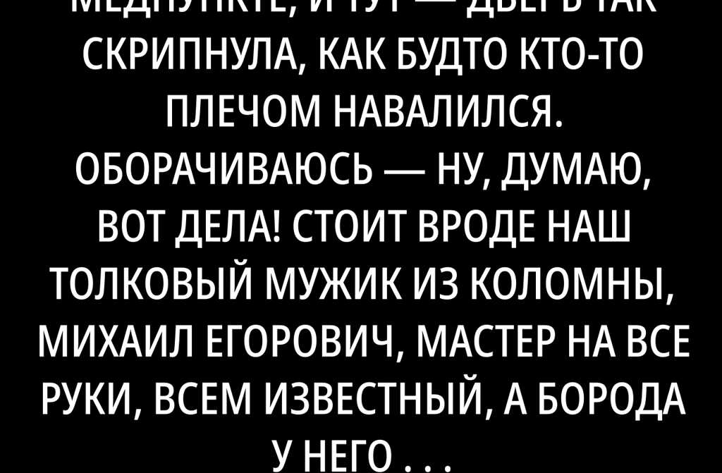 Вечером убираюсь в медпункте, и тут дверь так скрипнула, как будто кто-то плечом навалился. Оборачиваюсь ну, думаю, вот дела! Стоит вроде наш толковый мужик из Коломны, Михаил Егорович, мастер на все руки, всем известный, а борода у него всегда акудивная, седая, с ароматом опилок и табака. А тут вовсе без бороды, щеки чистые, бледные, и пластырь на шее. А от него таким «Шипром» несёт, что я аж нос зажала. Неужели Михалыч совсем бороду сбрил?