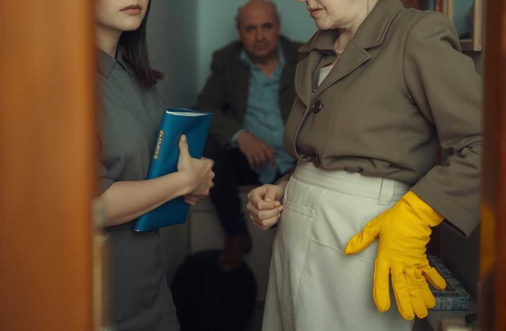 Шум в кухне замер. Через минуту в дверях появилась свекровь крепкая женщина лет пятидесяти семи в домашнем фартуке поверх светлого костюма. Волосы убраны, на руках перчатки, вид серьёзный, деловой.
