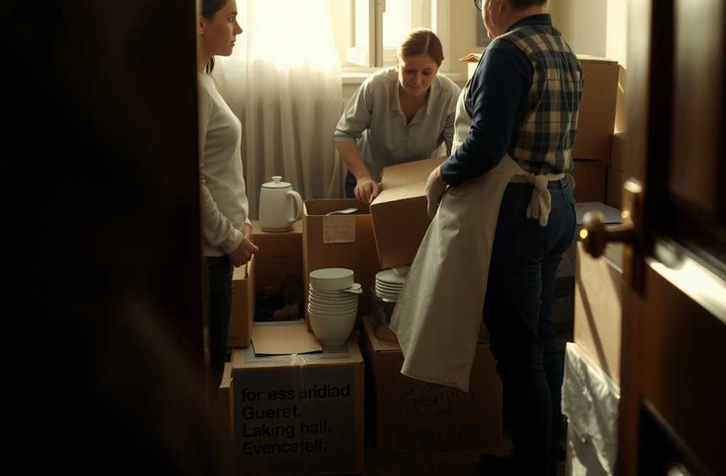 Открывает дверь а там три здоровых коробки, почти с неё ростом, надпись «БЕКО» на картоне. Одна уже заклеена скотчем, две другие полуоткрыты, сверху газеты. Из кухни шумит посуда и какое-то ворчанье, как пластинка заиграла.
