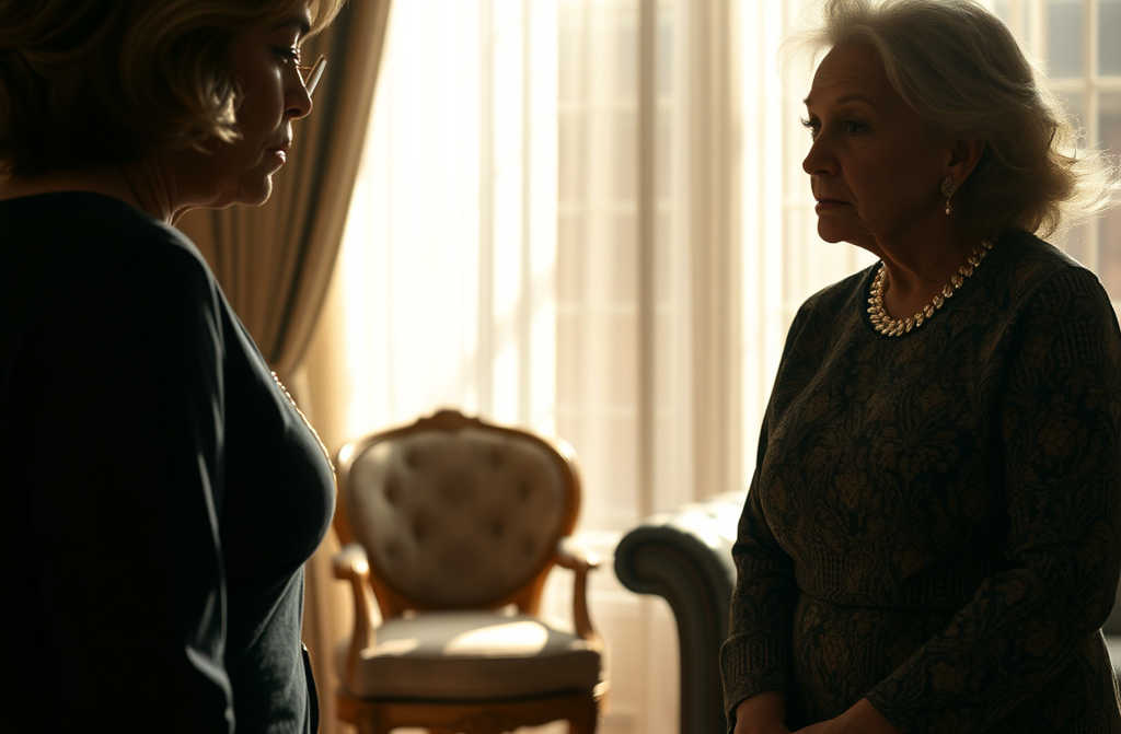 В комнате повисло напряжение. Серебристые волосы тёщи, блестящий маникюр, дорогие украшения всё казалось чужим и холодным. За её улыбкой, растянутой по тонким губам, пряталась хищная, почти звериная мысль.