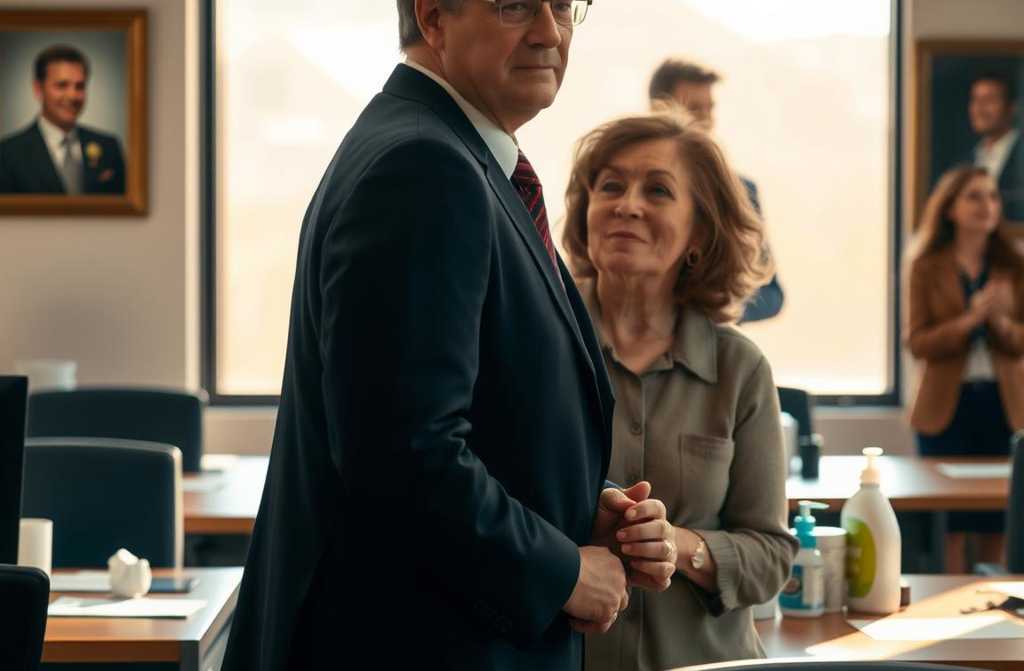 Вера убирала на своем этаже. Услышав голоса, она увидела Андрея Борисовича, который на ходу разговаривал с коллегой. Увидев ее, мэр кивнул и прошел совсем рядом.