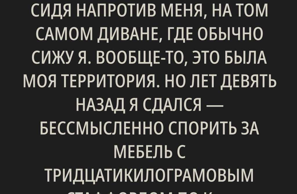 Сегодня последний день моего пса, и он тихо скулит, сидя напротив меня, на том самом диване, где обычно сижу я. Вообще-то, это была моя территория. Но лет девять назад я сдался бессмысленно спорить за мебель с тридцатикилограмовым стаффордом по кличке Полкан. С тех пор это его трон.