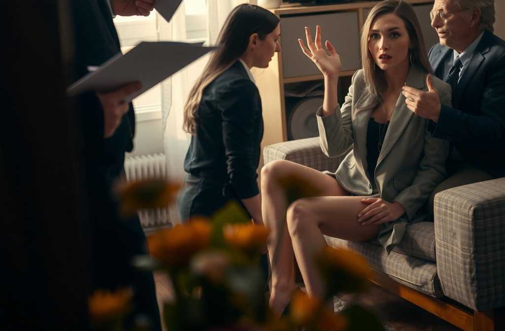 Он решительно вошёл в квартиру в гостиной сидела та самая инспекторша, судорожно сжимая папку, вид уставший, почти отчаянный. Вика вскочила, глаза синие круги от страха, губы подрагивают.
