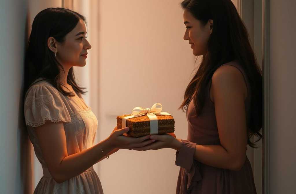 Людмила взяла торт с любопытством, приподняла крышку и заглянула внутрь. На её лице восхищение быстро сменилось подозрением.