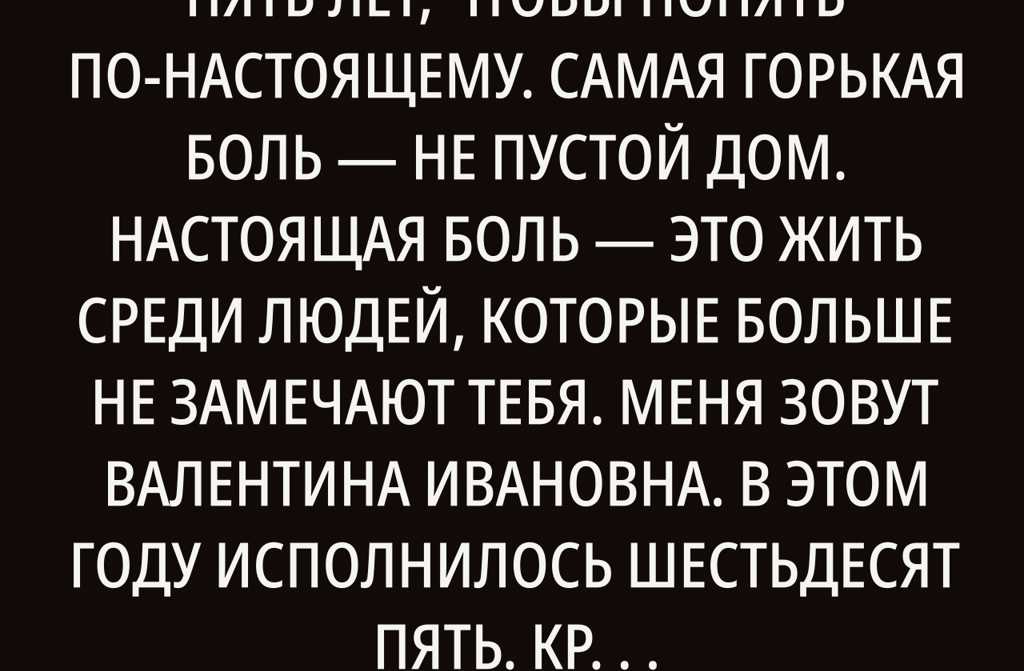 Шестьдесят пять лет понадобилось мне, чтобы понять одну истину: самая сильная боль — не пустой дом, …