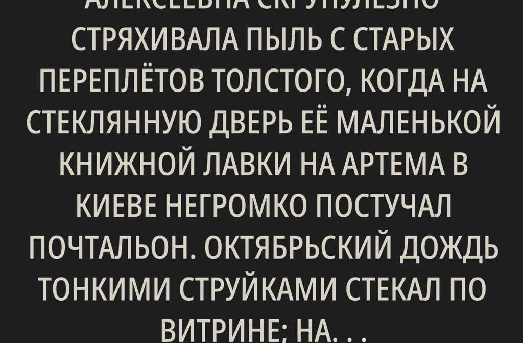 Василиса Алексеевна скрупулёзно стряхивала пыль с старых переплётов Толстого, когда на стеклянную дверь её маленькой книжной лавки на Артема в Киеве негромко постучал почтальон. Октябрьский дождь тонкими струйками стекал по витрине; на улице царила особая украинская серость, будто город сам скорбил вместе с ней прошло ровно три месяца после похорон Алексея.