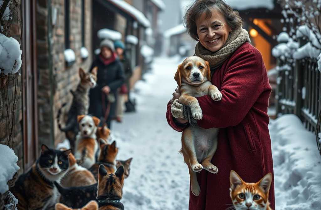 В тот вечер она спешила к последнему автобусу, который вёз её в село. Сначала зашла в магазин, купила продукты себе и питомцам, а ещё набрала еду из столовой. Тяжёлые сумки гнулись в её руках, но она шла, думая лишь о тепле дома. За несколько шагов до остановки её взгляд привлекло чтото под скамейкой: собака, покрытая снегом, смотрела стеклянным, потухшим взглядом. Люди проходили мимо, завернутые в шарфы, но никто не остановился. «Неужели никто не заметил?» пронеслось в голове.