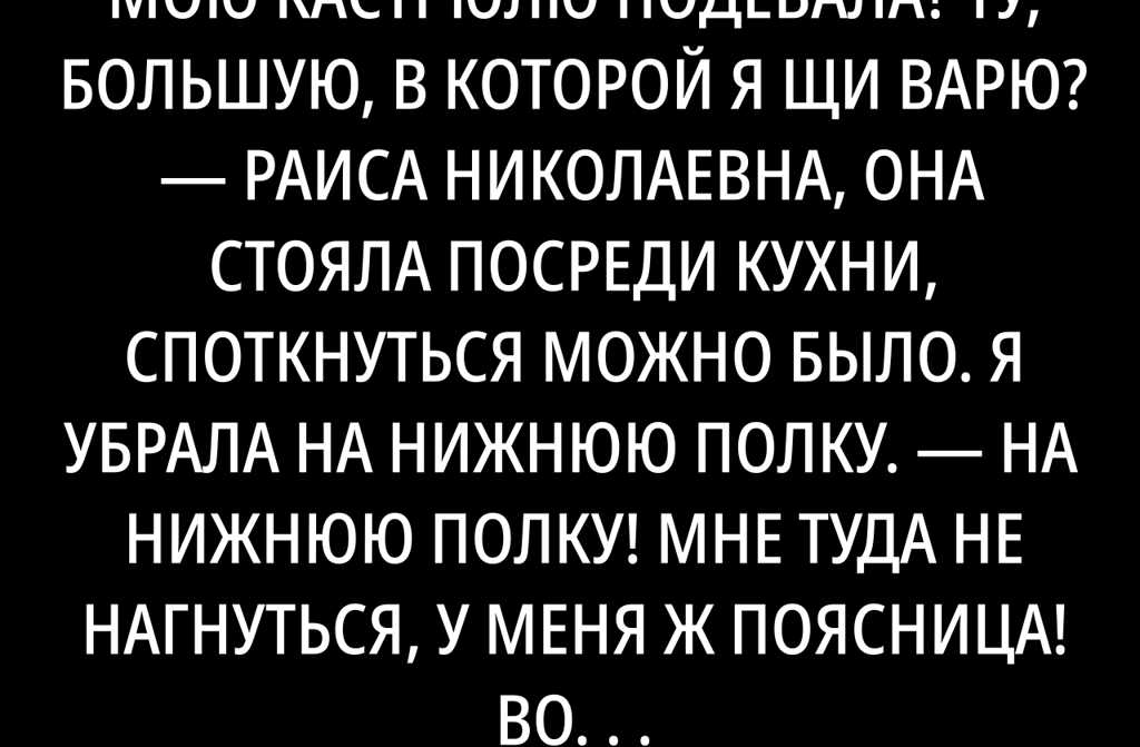 Ночью не спала, катала варианты внутри черепа. Говорить в лоб? Будет обида, слёзы, крики “вы меня выгоняете”. Скандал? Хуже. Давить на Колю он между двух молотов, нет, не тот случай. Терпеть? Нет, хватит.
