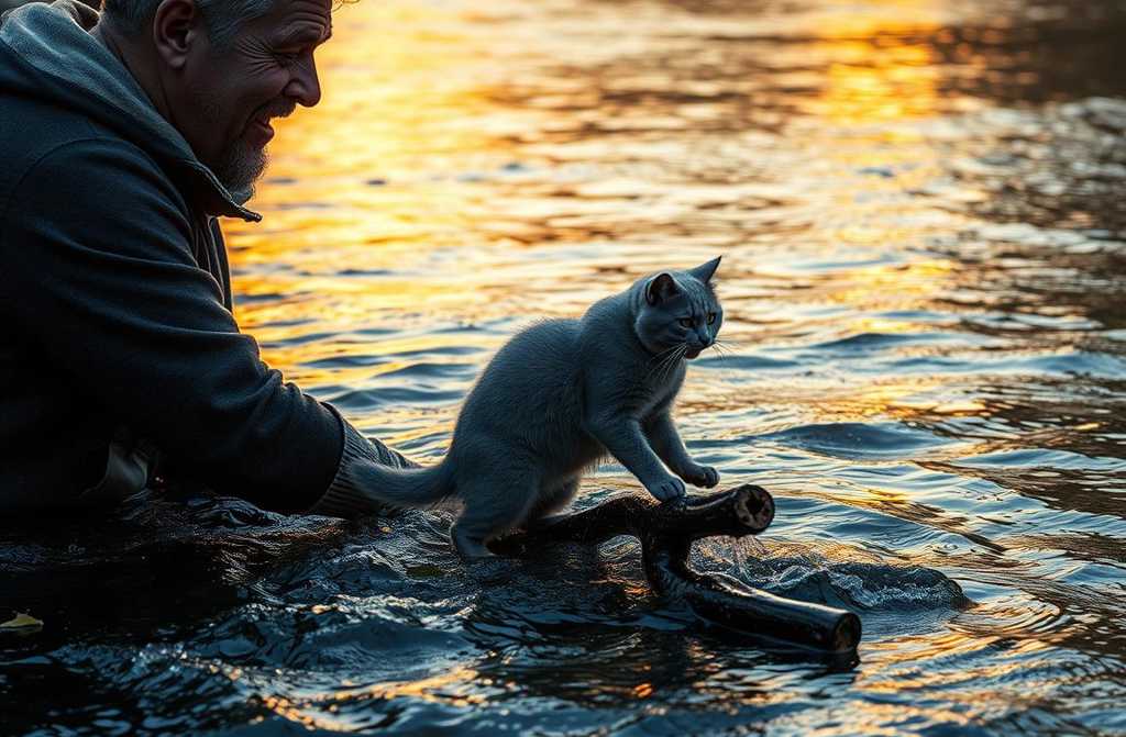 Сняв протез, он положил его рядом и, прищурившись, следил за плывущим по воде поваленным деревом утонет или нет? На середине оно зацепилось за отмель. «Застрял», констатировал Михаил. Через десять минут, когда пойдёт волна, его всё равно снесёт. Но тут он заметил нечто странное: среди веток барахталось маленькое существо. Приглядевшись, он узнал в нём кота. Серый, мокрый, дрожащий, он отчаянно цеплялся за ветки. Теперь он сидел на самом верхнем суку, метрах в двадцати от берега, впиваясь когтями в кору.