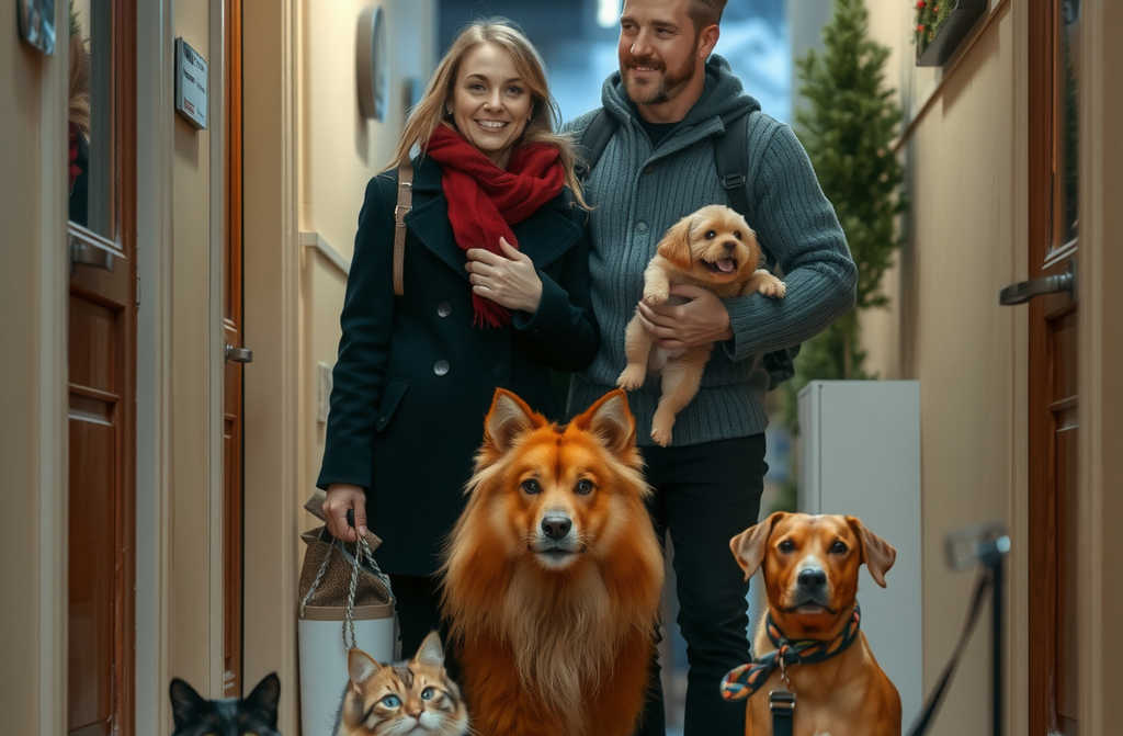 Спустя несколько часов в дверь звонят. На пороге стоит Саша, улыбающийся, с двумя пакетами дорогого корма для кошек и собак. Быстро выгружает их, уходит… Через минуту возвращается с поводком рядом аккуратная такса в красном комбинезоне.