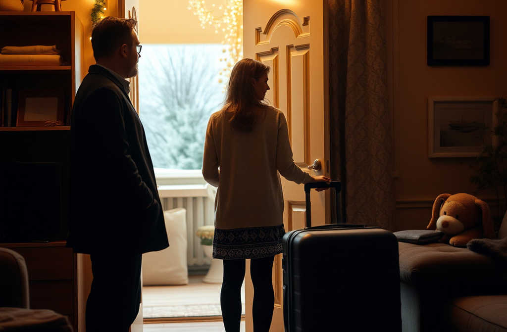 Она стояла на входе с чемоданом и сияющей улыбкой, будто делает нам одолжение.