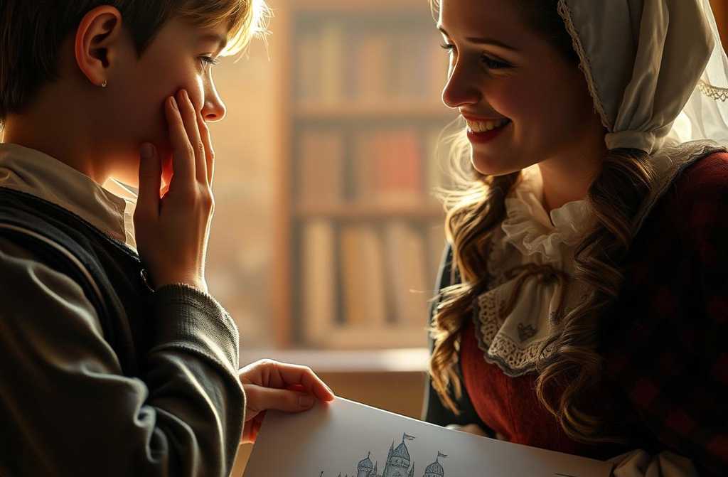 Мальчик поднял глаза, вытирая рукавом слёзы. Анастасия села рядом, открыла книгу на странице с картинкой древнерусского кремля.