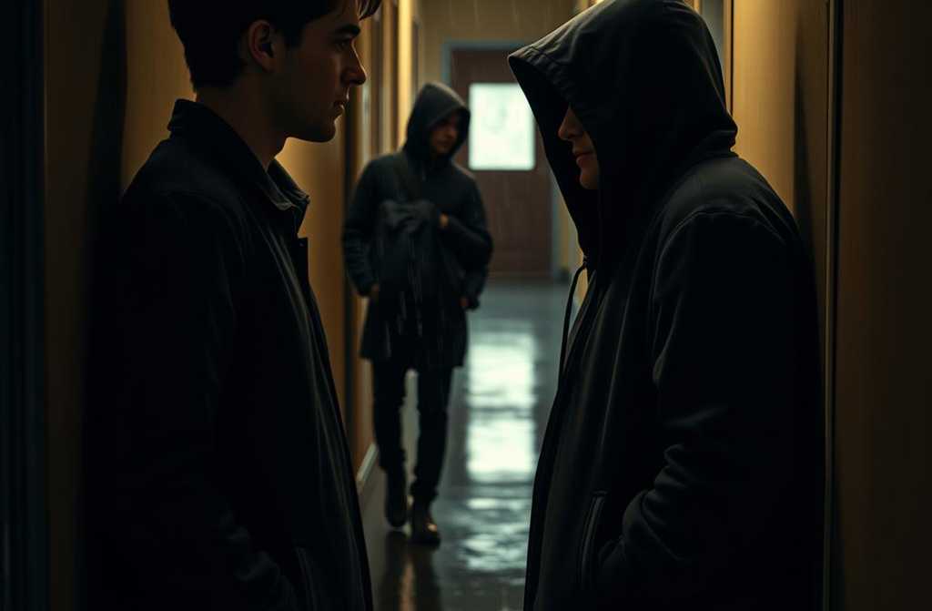 Вдруг из кустов выскочила ещё одна фигура в капюшоне, бросилась на мужчину. Он ослабил хватку, а я, словно в замедленном кадре, стоял, не в силах пошевелиться. Вокруг меня крутилось время, как будто я застрял в вечном дожде. Две тени в капюшонах стояли передо мной.