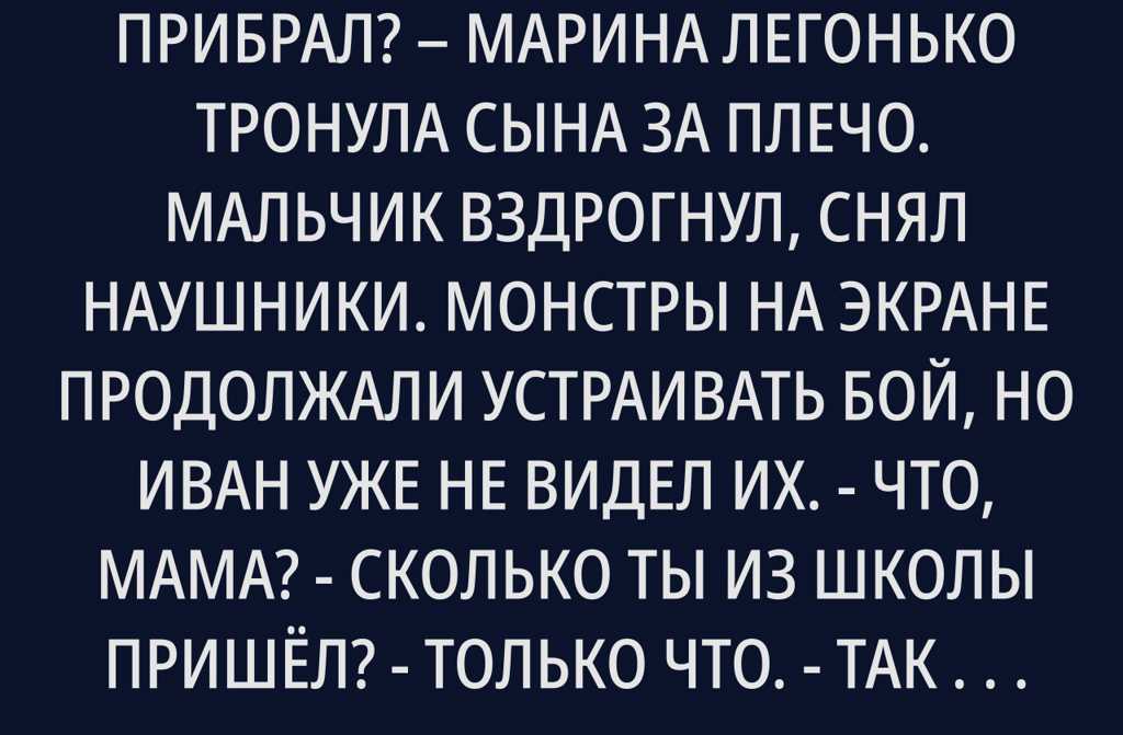 Мальчик вздрогнул, снял наушники. Монстры на экране продолжали устраивать бой, но Иван уже не видел их.