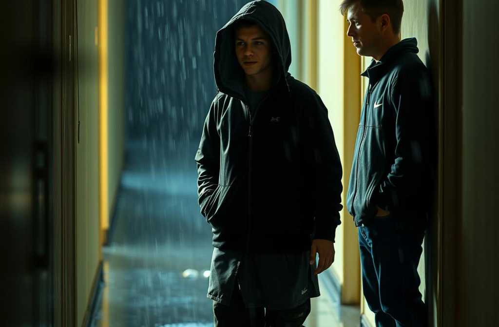 В тот момент из кустов выскочила ещё одна фигурка в капюшоне, бросилась на первого мужчину. Он ослабил хватку, и Матвей отскочил назад. Вокруг него стояли два черных силуэта, будто сливались с дождём и ветром.
