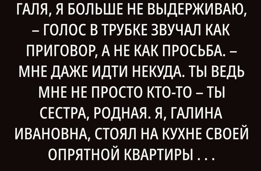 Галя, я больше не выдерживаю, голос в трубке звучал как приговор, а не как просьба. Мне даже идти некуда. Ты ведь мне не просто кто-то ты сестра, родная.